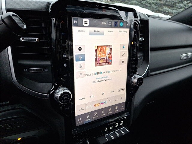 Big Horn Level 1 Plus Equipment Group (12" Touchscreen Display, 2 Way Rear Headrest Seat, 2nd Row In Floor Storage Bins, 4 Way Front Headrests, 40/20/40 Split Bench Seat, 4G LTE Wi-Fi Hot Spot, 9 Alpine Speakers w/Subwoofer, Air Conditioning ATC w/Dual Zone Control, Alexa Built-In, Anti-Spin Differential Rear Axle, Apple CarPlay, Auto Power-Folding Mirrors, Auto-Dimming Rear-View Mirror, Black Exterior Mirrors, Connected Travel & Traffic Services, Connectivity - US/Canada, Dual Glove Boxes, Emergency Vehicle Alert System (EVAS), Exterior Mirrors Courtesy Lamps, Exterior Mirrors w/Heating Element, Exterior Mirrors w/Supplemental Signals, Foam Bottle Insert (Door Trim Panel), Folding Flat Load Floor Storage, Footwell Courtesy Lamp, Forward & Reverse Utility Lights, Front Armrest w/Cupholders, Front Center Seat Cushion Storage, Front Seat Back Map Pockets, Global Telematics Box Module (TBM), Glove Box Lamp, Google Android Auto, GPS Antenna Input, GPS Navigation, HD Radio, Integrated Voice Command w/Bluetooth, LED Bed Lighting, Locking Lower Glove Box, Luxury Steering Wheel, Manual Adjust 4-Way Front Passenger Seat, Mirror Running Lights, MOPAR Deployable Bed Step, MOPAR Spray In Bedliner, Off-Road Info Pages, Power 2-Way Driver Lumbar Adjust, Power Adjust 8-Way Driver Seat, Power Adjust Mirrors, Power Adjustable Convex Aux Mirrors, Power Heated Folding Telescopic Mirrors, Power Telescoping Mirrors, Premium Cloth 40/20/40 Bench Seat, Radio: Uconnect 5 Nav w/12.0" Display, Rear 60/40 Folding Seat, Rear Dome w/On/Off Switch Lamp, Remote Start System, Remote USB Port - Charge Only, Selectable Tire Fill Alert, SiriusXM Radio Service, SiriusXM w/360L, Steering Wheel Mounted Audio Controls, Storage Tray, and Trailer Tow Pages), Night Edition (Black Exterior Truck Badging, Black Interior Accents, Black Wheel Center Hub, Body Color Grille Surround, Gloss Black Nostrils/Mic Black Grille, Painted Front Bumper, Painted Rear Bumper, and Wheels: 20" x 8.0" Black Painted Aluminum), Quick Order Package 2UZ Big Horn, 3.73 Axle Ratio, 4-Wheel Disc Brakes, 6 Speakers, ABS brakes, Air Conditioning, Alloy wheels, AM/FM radio: SiriusXM, Apple CarPlay/Android Auto, Brake assist, Bumpers: chrome, Cloth 40/20/40 Bench Seat, Compass, Delay-off headlights, Driver door bin, Dual front impact airbags, Dual front side impact airbags, Electronic Stability Control, Front anti-roll bar, Front Center Armrest w/Storage, Front fog lights, Front License Plate Bracket, Front reading lights, Fully automatic headlights, Heated door mirrors, Illuminated entry, Low tire pressure warning, Manual Adjust 4-Way Driver Seat, Manufacturer's Statement of Origin, Occupant sensing airbag, Outside temperature display, Overhead airbag, Overhead console, Painted Flat Wheel-to-Wheel Side Steps, Panic alarm, ParkView Rear Back-Up Camera, Passenger door bin, Passenger vanity mirror, Power door mirrors, Power steering, Power windows, Radio data system, Radio: Uconnect 5 w/8.4" Display, Rear anti-roll bar, Rear Folding Seat, Rear seat center armrest, Rear step bumper, Rear window defroster, Remote keyless entry, Security system, Speed control, Tachometer, Tilt steering wheel, Traction control, Trip computer, Turn signal indicator mirrors, Variably intermittent wipers, Vinyl 2nd Row Seat, Voltmeter, and Wheels: 18" x 8.0" Polished Aluminum.
